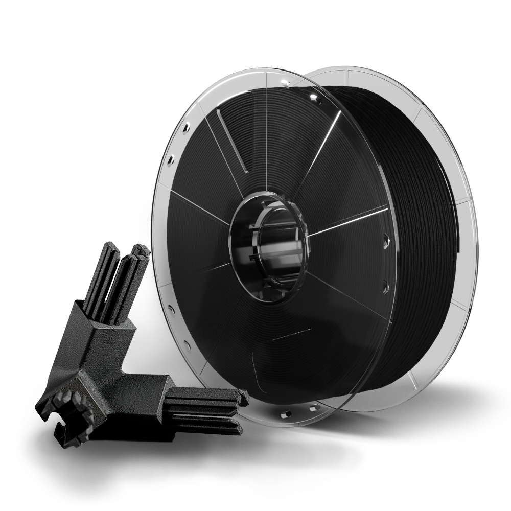 Mosaic Matrix (CF Nylon-6) is a proprietary carbon fiber nylon filament optimized for printing on Element, offering a high strength-to-weight ratio and excellent wear resistance. The carbon fiber reinforcement minimizes visible layer lines, producing parts with high aesthetic quality ideal for aerospace components, automotive parts, and protective casings.